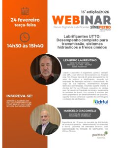 A Associação dos Produtores e Importadores de Lubrificantes, SIMEPETRO, realizará no dia 24 de fevereiro, das 14h30 às 15h40, a 13ª edição de seu Fórum Digital de Lubrificantes, com foco nos lubrificantes UTTO (Universal Tractor Transmission Oil). O encontro reunirá especialistas do setor para discutir o papel estratégico desses fluidos no desempenho integrado de transmissões, sistemas hidráulicos e freios úmidos em equipamentos off-highway, segmento que demanda soluções cada vez mais eficientes e tecnicamente robustas.
